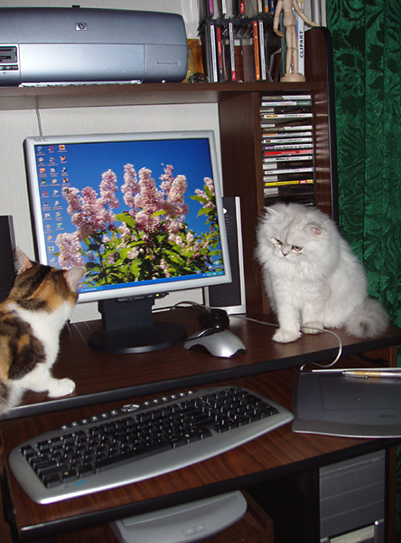 Не знаю, Марина. Но Пуха больше в мужу ластица, а Монька за мной по пятам шастает. :) И обе обожают торчать у компа когда я работаю.