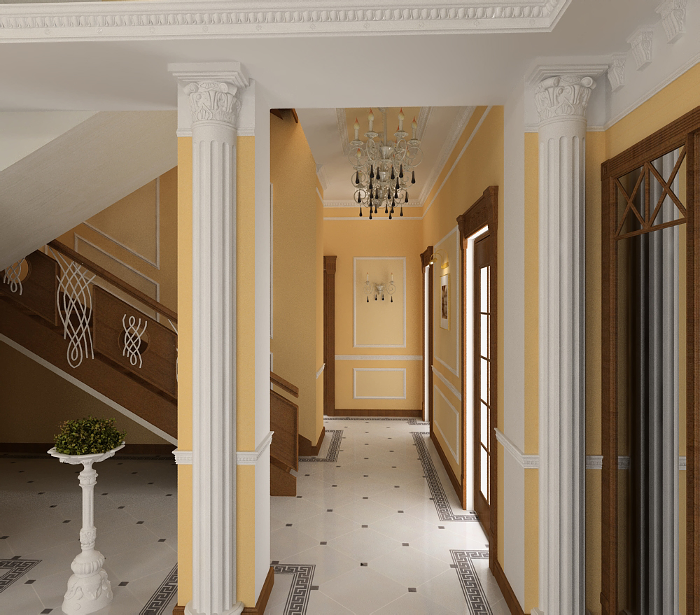 Требуется визуализация лестницы в классическом стиле. Вознаграждение обсуждается. Срочно. Инф-у вшлю по e-mail. Это предварительная заготовка картинки.Хочется увидеть доработанную картинку с мебелью , с другими балясинами. Конструктив такой.