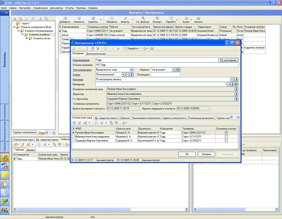 Есть готовое решение АПЕК-CRM Lite 3.1 АПЕК - CRM Lite позволяет вести учет всех взаимоотношений с клиентами: полную информацию о контрагенте (реквизиты, контактные лица, телефоны); сохранять всю историю сотрудничества; учет проектов, счетов, договоров, документов; финансовый анализ. проста и удобна в работе. сайт: демо-версия: Программные решения АПЕКСОФТ можно доработать согласно бизнес - требованиям наших клиентов. Прикреплённый файл: