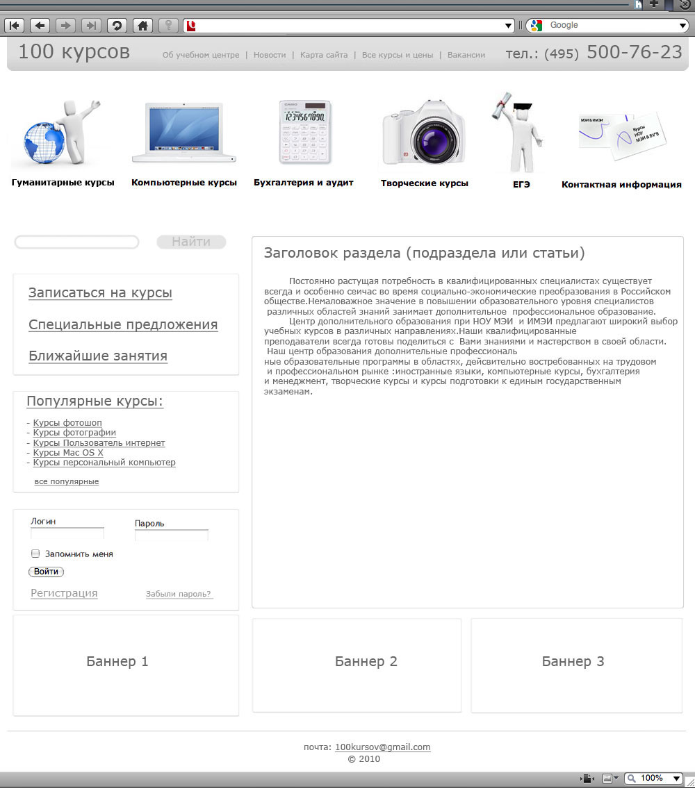 Есть дизайн в PSD,есть нарезанные картинки,есть немного недоделанная верстка. Некорректно отображается в ie 6,нужно доделать и исправить прблему. Требования-кроссбраузерность и верстка как в макете. Просьба указывать контакты,сроки и цену. Спасибо заранее |