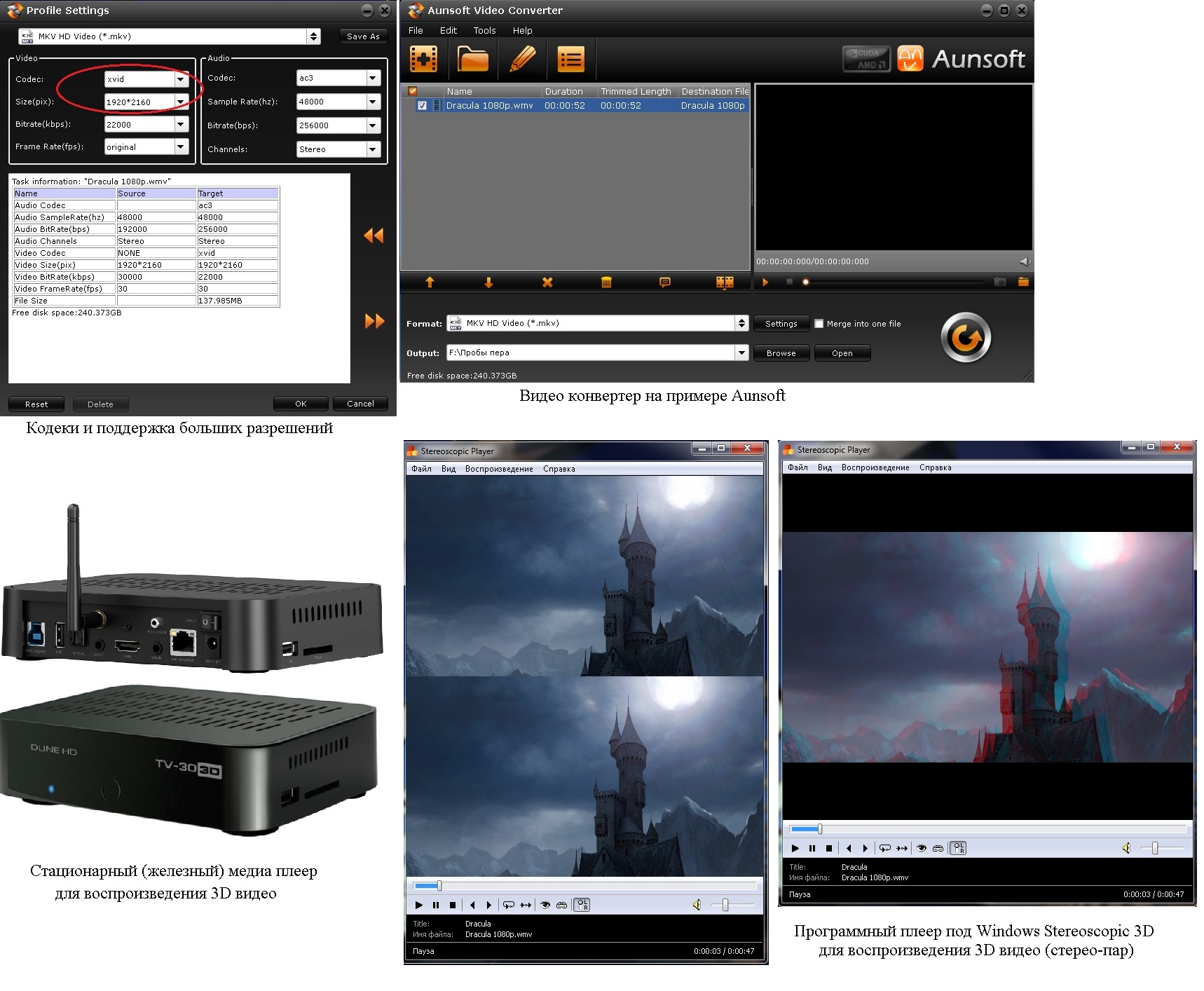 Пример: Создается свой или модифицируется готовый видео-кодек (DivX, XviD, mpeg4, h.263, h.264, avc, avchd, wmv) в каком контейнере это будет в принципе не важно (avi, mp4, wmv, mkv, m2ts, mts) далее выбирается любой видео-конвертер (DVDfab, ProCoder, Aunsoft, Movavi, Xilisoft, VideoMach, ACDSee, CyberLink) в который будет встроен данный модифицированный кодек, затем выбирается 3D медиаплеер (3D StereoScopic,...