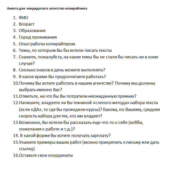 Здравствуйте! В агентство копирайтинга Scriptoria требуется сотрудник для написания текстов. Мы предлагаем 40% за работу от расценок, представленных на нашем сайте scriptoria.ru Заполненную анкету присылайте по адресу zakaz@scriptoria.ru