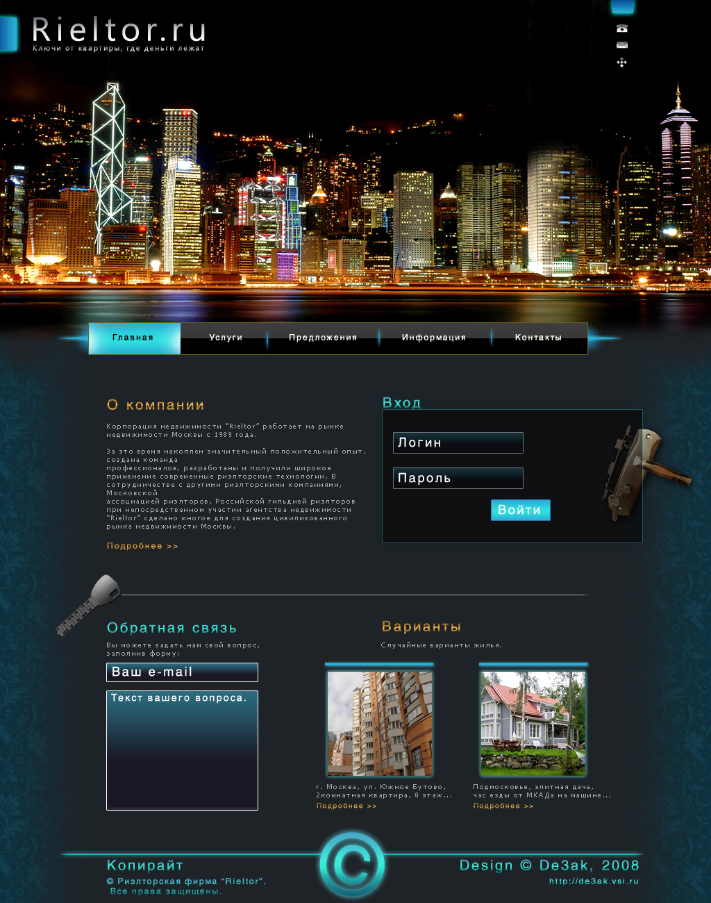 Интернет магазин по продаже недвижимости по россии. Главный акцент на Москву. Дизай сайта не должен быть шаблоном.